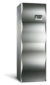 Nagy teljesítményű lemezes hőcserélő, készülékbe integrált, vízszintes vagy függőleges tengelyű, hangtalan futást lehetővé tevő ventillátor.